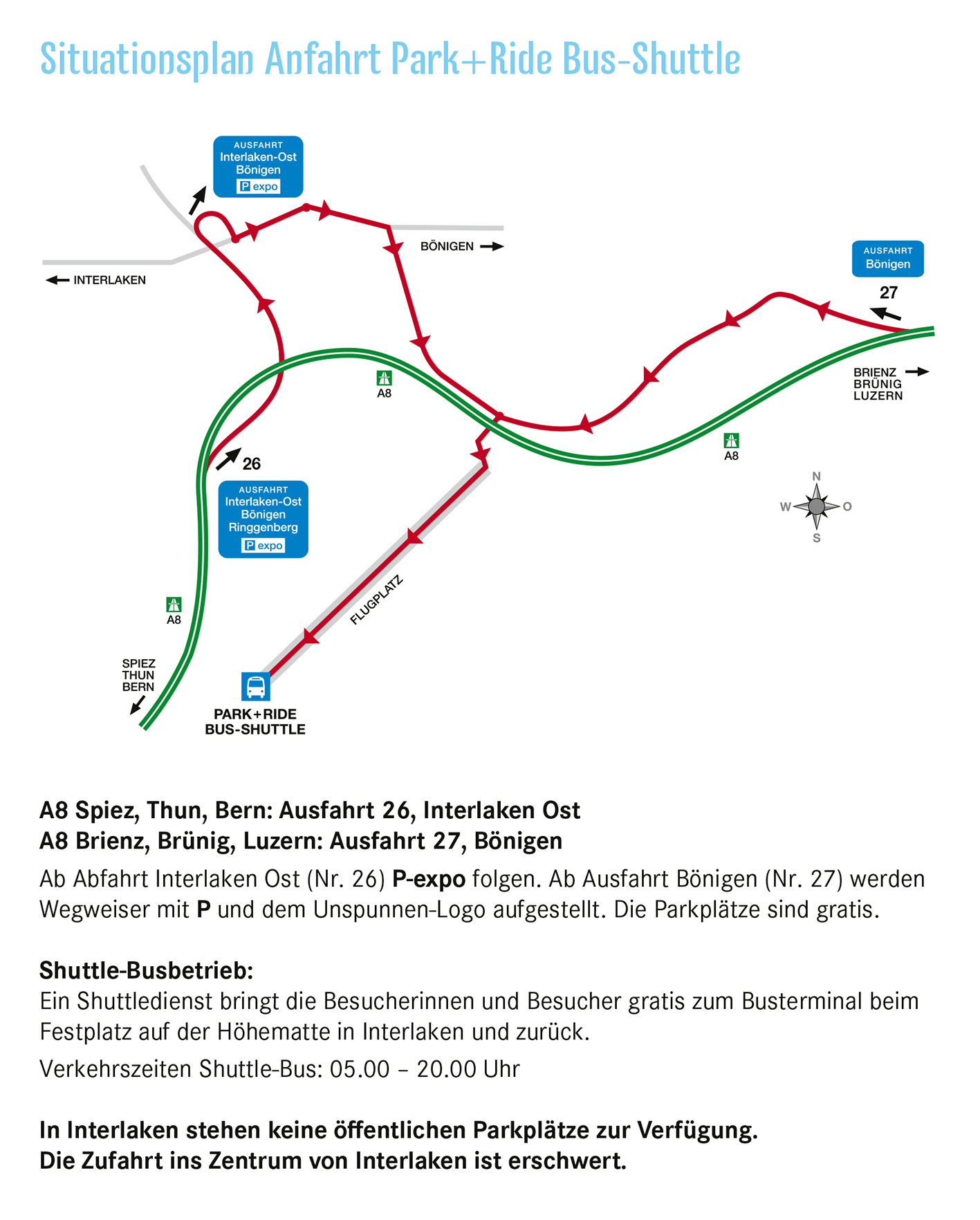 Für den Unspunnen-Schwinget kommen zahlreiche Extrazüge zum Einsatz. Die Früh-Extrazüge am Sonntagmorgen ermöglichen Ihnen ein rechtzeitiges Ankommen in Interlaken-Ost (wird empfohlen) respektive auf dem Festgelände. Details finden Sie in der Fahrplanbroschüre oder online unter: